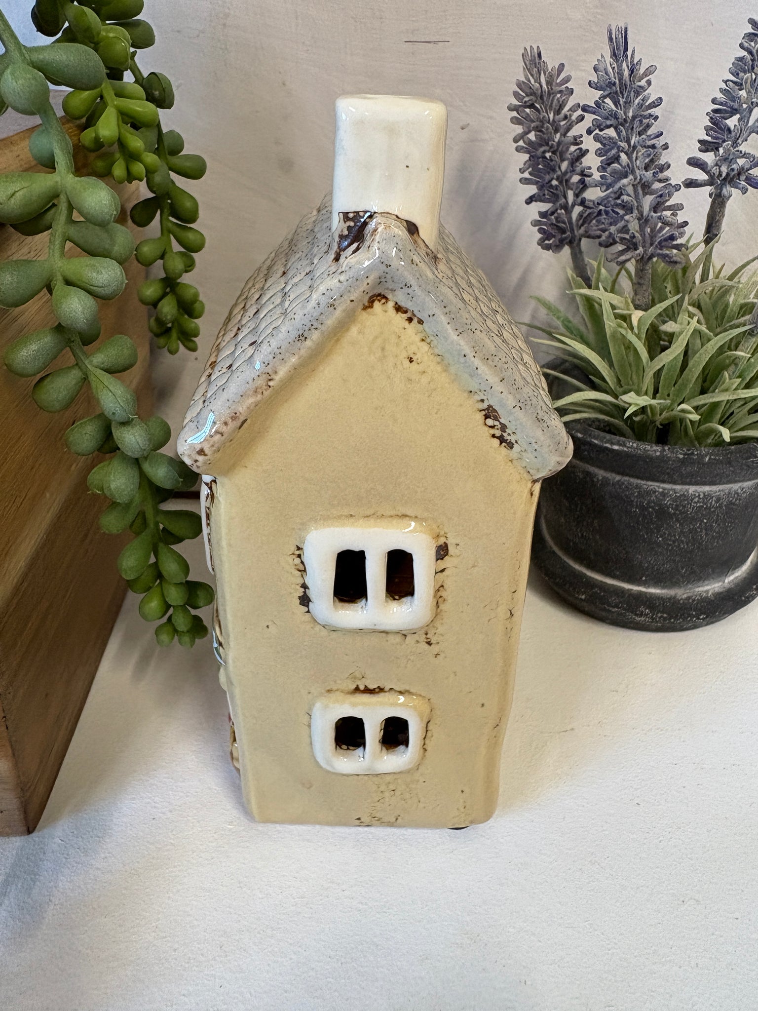 The village Green Grocers tea light holder is hand-finished making each one unique and when it is charming when lit and it's cosy light is visible through the shop windows. A lovely gift idea or simply a beautiful addition to your own home or collection of village pottery houses, shops and cafes. Perfect all year round but particularly charming at Christmas time! Dimensions 15cm x 8.5cm x 6.5cm
