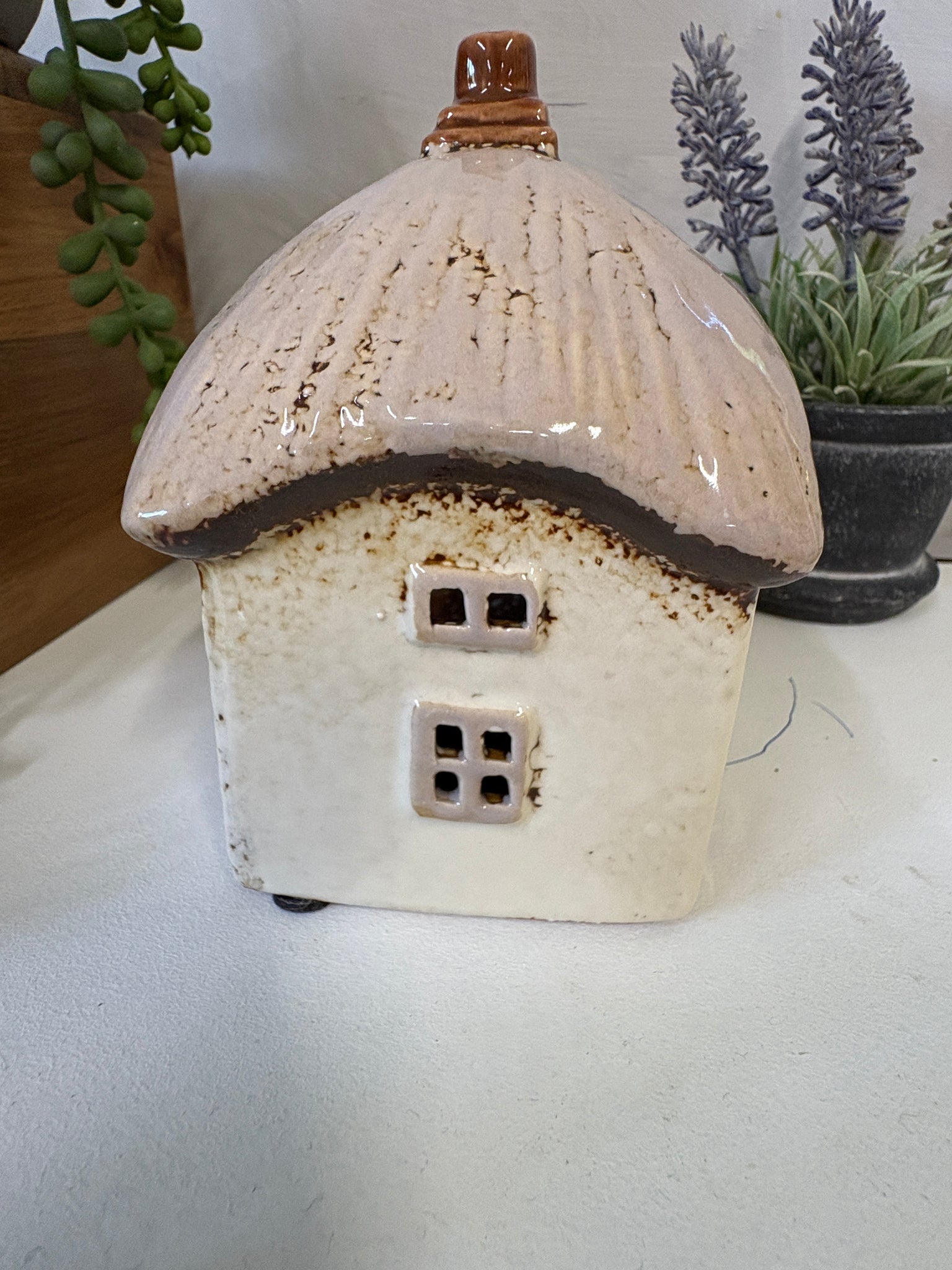 Lovely village pottery tea light holder in the shape of an old english pub . If looks gorgeous when the candle is lit and gives a warm cosy glow to any room .It measures 12cm high x 17cm wide x 8cm deep and arrives well wrapped. I can gift wrap and add a candle to make the perfect gift.